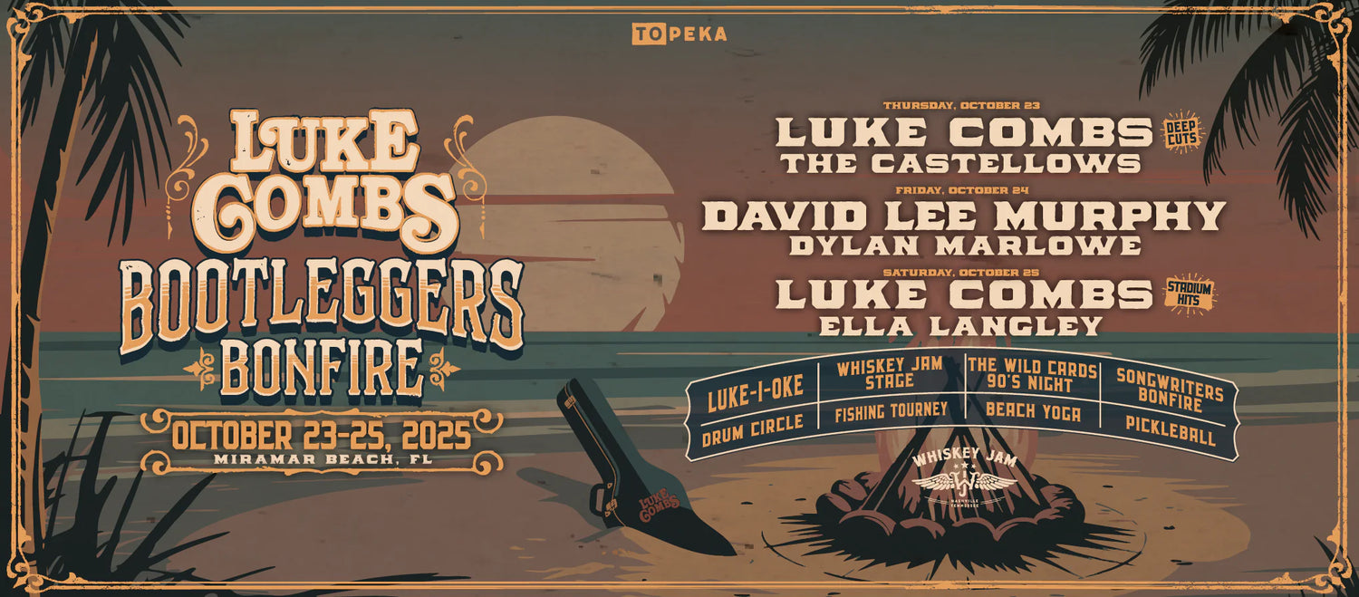 Luke Combs’ Bootleggers Bonfire is an intimate fan experience set for October 23–25, 2025 in Miramar Beach, Florida, featuring live music, storytelling, and beachside hangouts with the Bootleggers community.