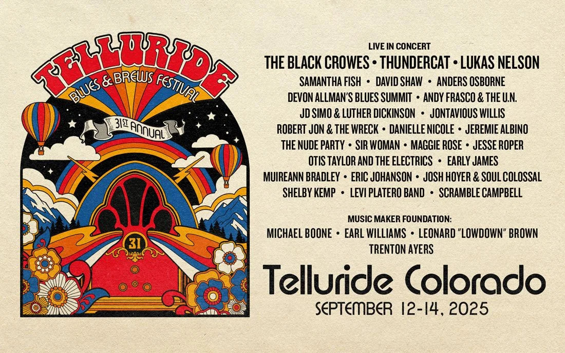 The Telluride Blues & Brews Festival is a three-day music and craft‑beer event each September in scenic Telluride, Colorado, blending live performances—from blues, funk, gospel, and rock—with top-tier craft brews and mountain views.